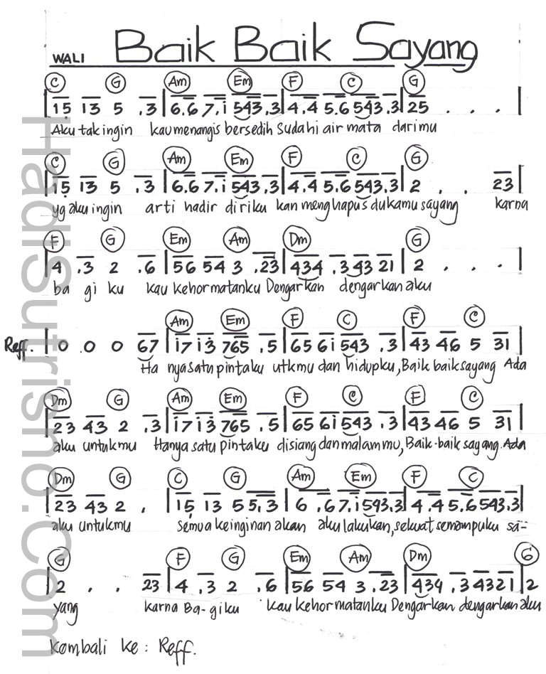 Kumpulan Not Angka Not Angka Wali Baik Baik Sayang