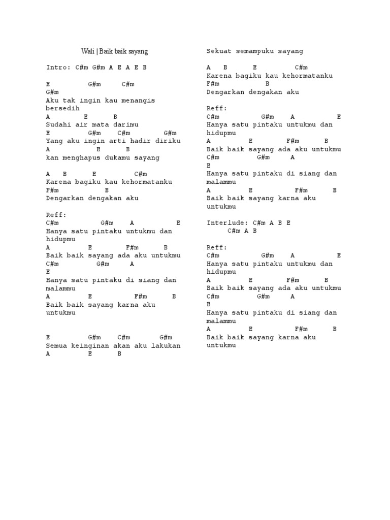 Baik Baik Sayang By Wali Band Chords Chordify