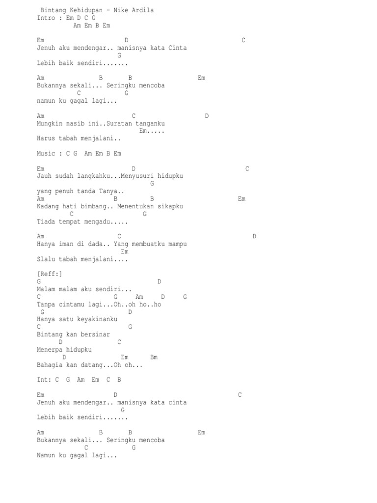 Doc Chord Kunci Gitar Bintang Kehidupan Nike Ardila Novi Ta