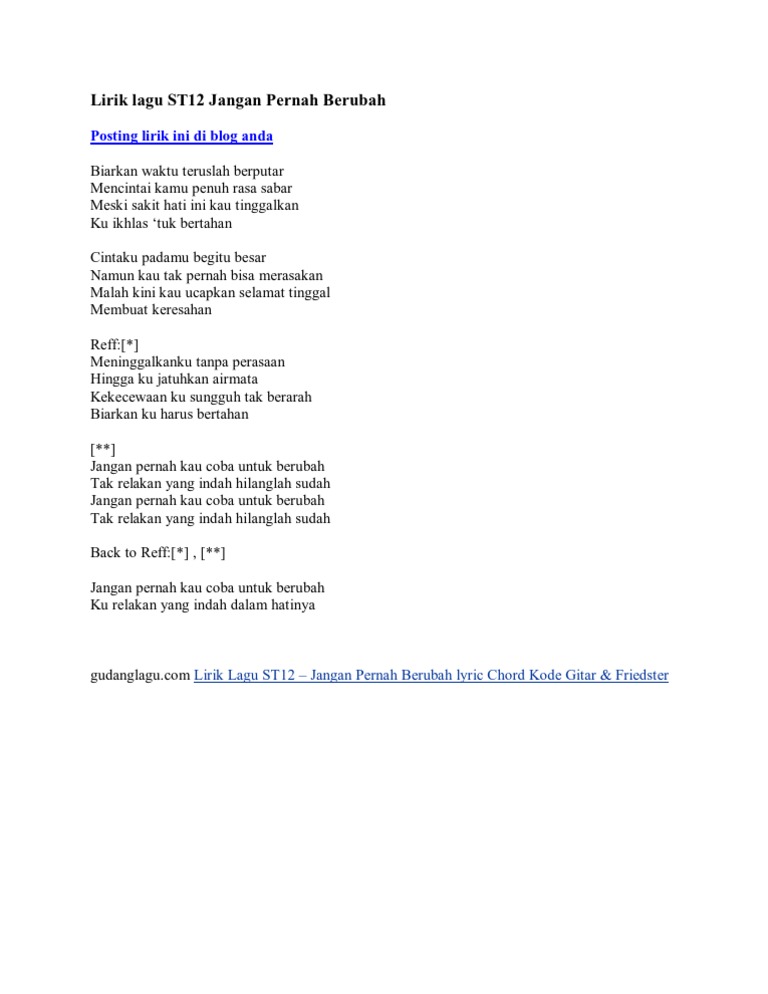 St12 Jangan Pernah Berubah Kunci Gitar Lirik Lagu Chords