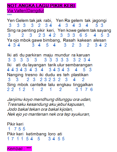 Not Angka Lagu Pikir Keri Via Vallen Lirik Anythings School