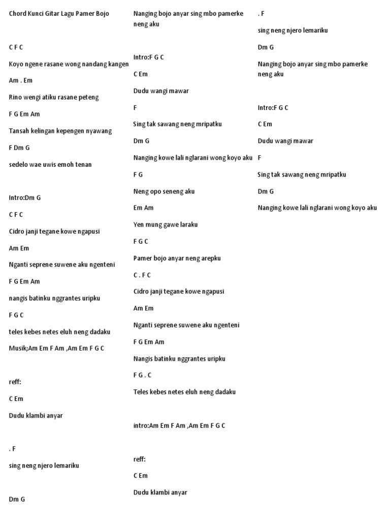 Chord Kunci Gitar Lagu Pamer Bojo Docx Chord Kunci Gitar Lagu