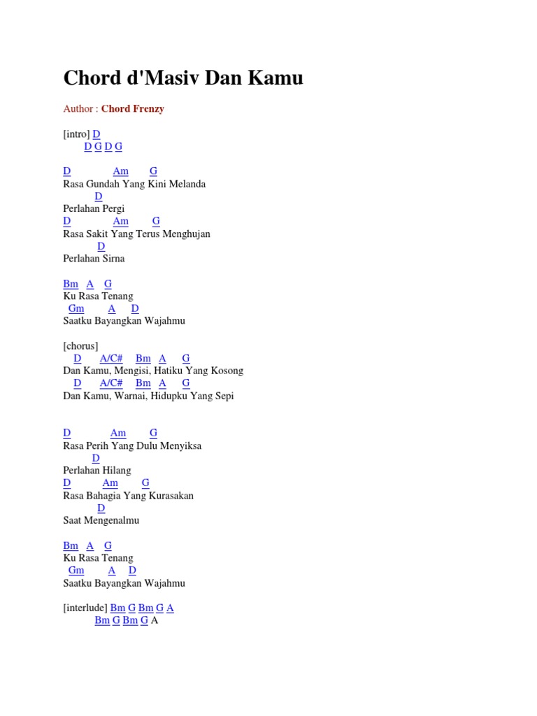 Chord Lagu Kunci Gitar D Masiv Dengarlah Sayang Chord Aramazu