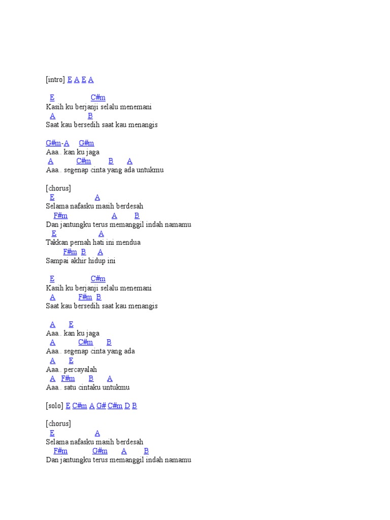 Chord judika sampai mati. C f selama nafasku masih berdesah dm em dan jantungku terus memanggil f g indah namamu c am f takkan. Chord kunci gitar judika mama papa larang mapala intro. Kan ku jaga f am g f aaa. Judika feat duma riris sampai akhir intro e a e a e c m kasih ku berjanji selalu menemani a b saat kau bersedih saat kau menangis g m a g m aaa.