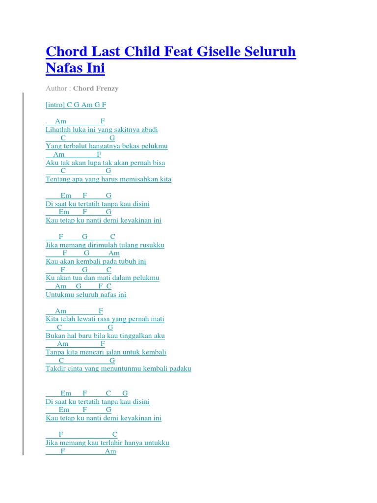 Chord Gitar Lirik Lagu Seluruh Nafas Ini Last Child Feat Gisel