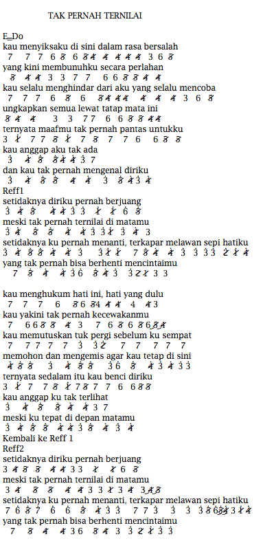 Not Angka Pianika Lagu Last Child Tak Pernah Ternilai Not Angka