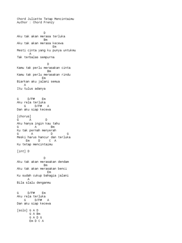 Chord Tetap Mencintaimu By Juliette Chordlicious
