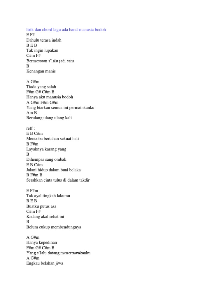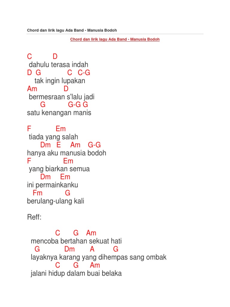 Ada Band Manusia Bodoh Lirik Chords Chordify