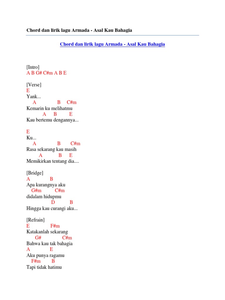 Chord Gitar Asal Kau Bahagia By Armada By Joe Satria Issuu