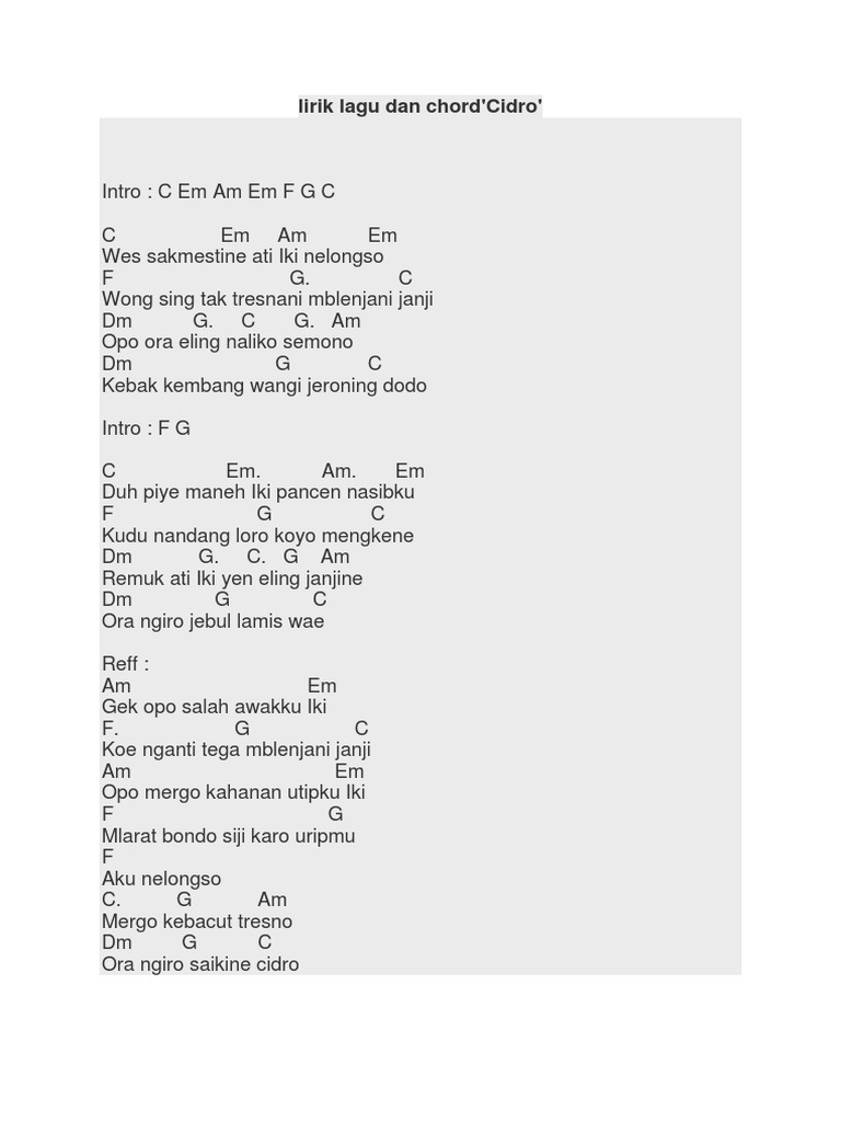 Chord Cidro Didi Kempot Chord Cidro Wes Sakmestine Ati Iki