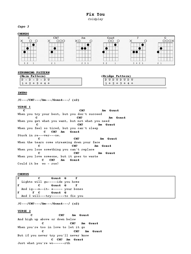Coldplay Fix You Chord Copd Blog R
