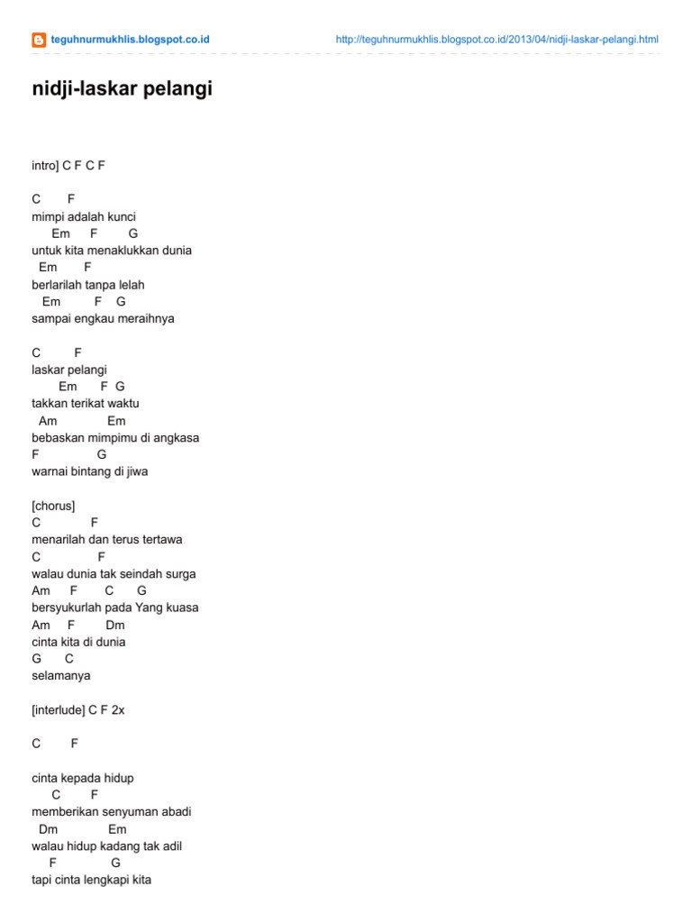 Chord Laskar Pelangi Ost Laskar Pelangi By Nidji Chordlicious