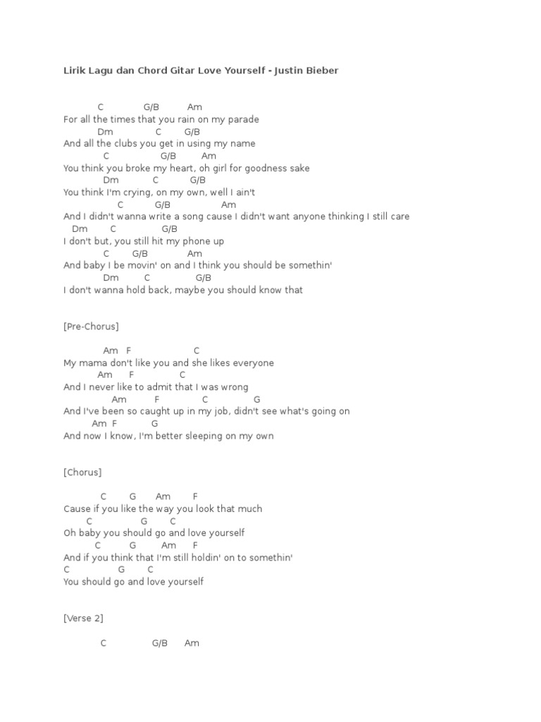Chord Lagu Love Yourself Justin Bieber لم يسبق له مثيل الصور