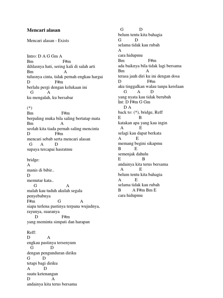 Lirik Lagu Dan Chord Gitar Mencari Alasan Yang Dipopulerkan