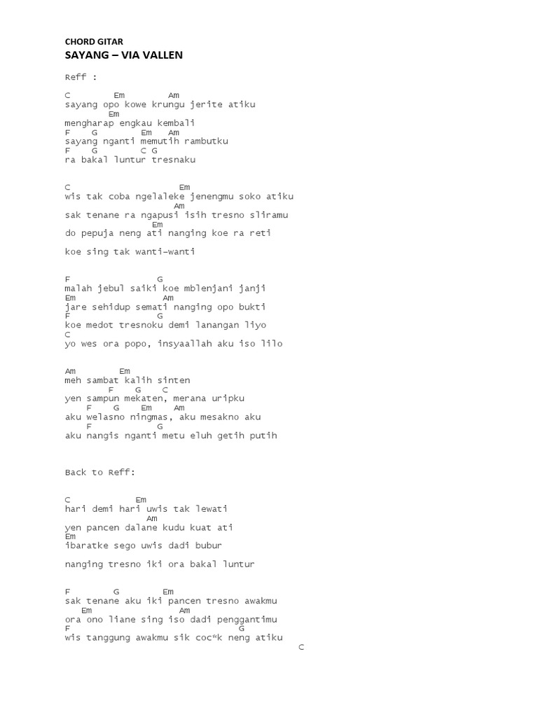 Via Vallen Sayang Kumpulan Kunci Gitar Lirik Lagu Indonesia