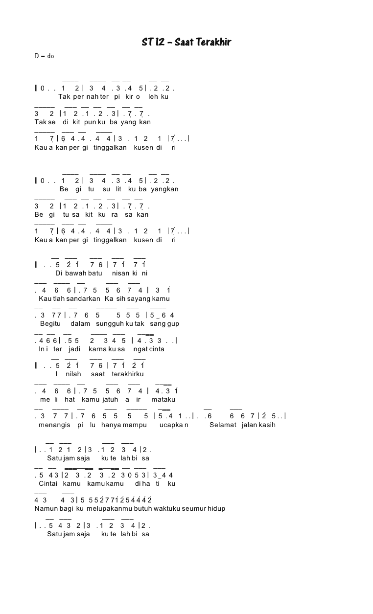 Kumpulan Not Angka Not Angka St12 Saat Terakhir