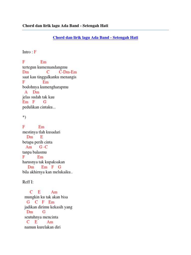 Chord Dan Lirik Lagu Ada Band Setengah Hati