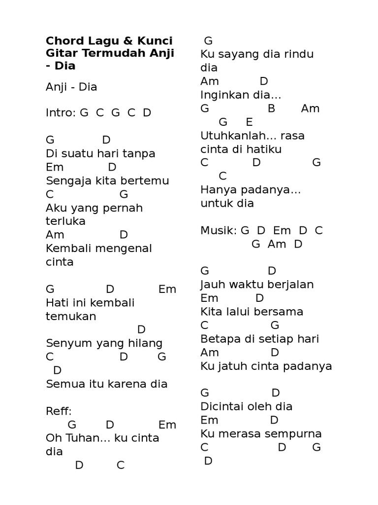 Chord Jpeg Kunci Gitar Chord Lirik Lagu Anji Dia Kunci