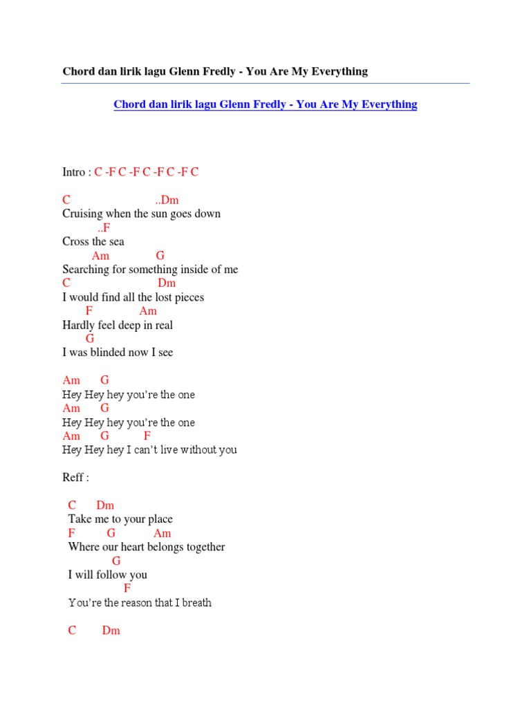Chord Dan Lirik Lagu Glenn Fredly You Are My Everything Earth