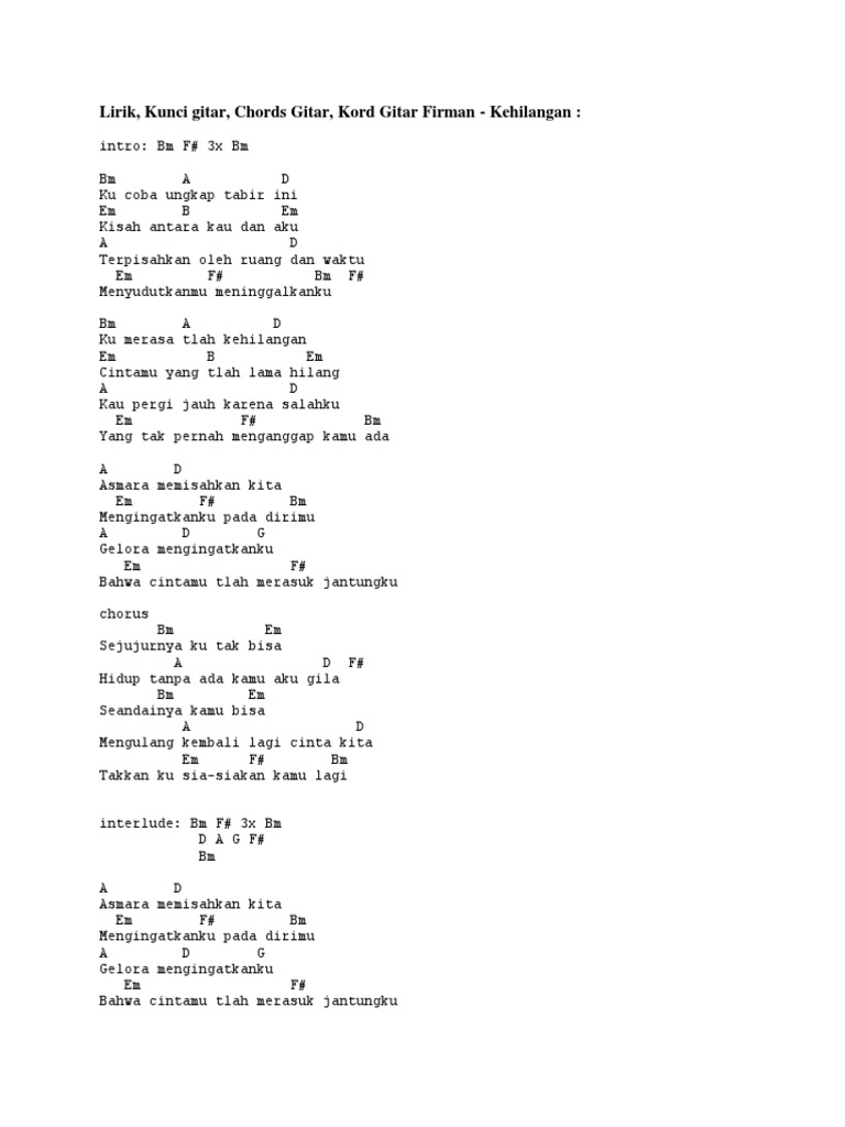 Kunci Gitar Firman Kehilangan Chords Chordify