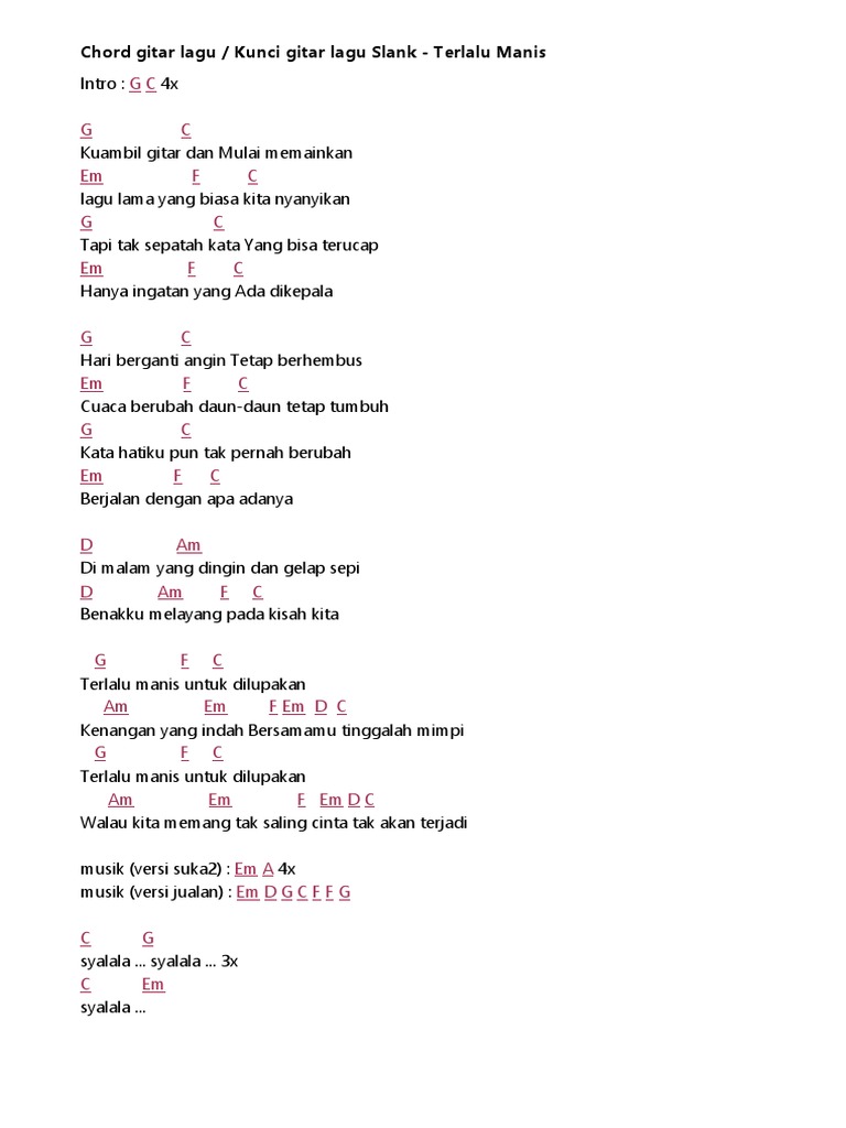 G C G C Em F C G C Em F C Chord Gitar Lagu Kunci Gitar Lagu