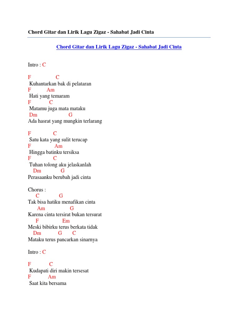 Download Pdf Chord Gitar Dan Lirik Lagu Zigaz Sahabat Jadi