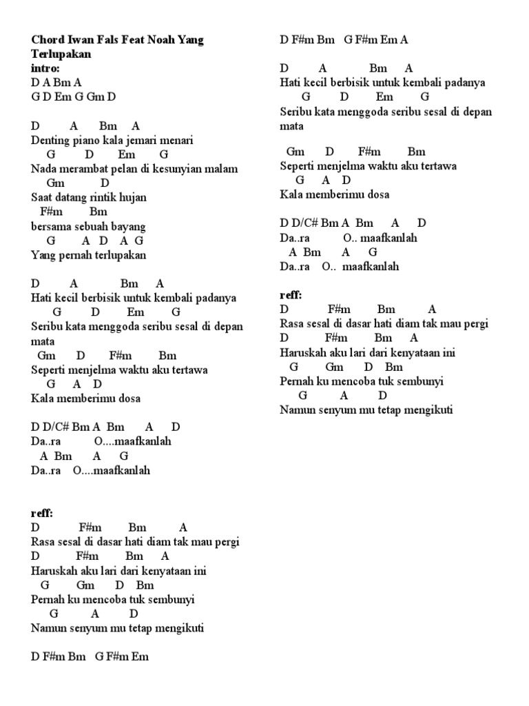 Chord Iwan Fals Feat Noah Yang Terlupakan