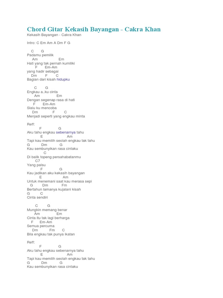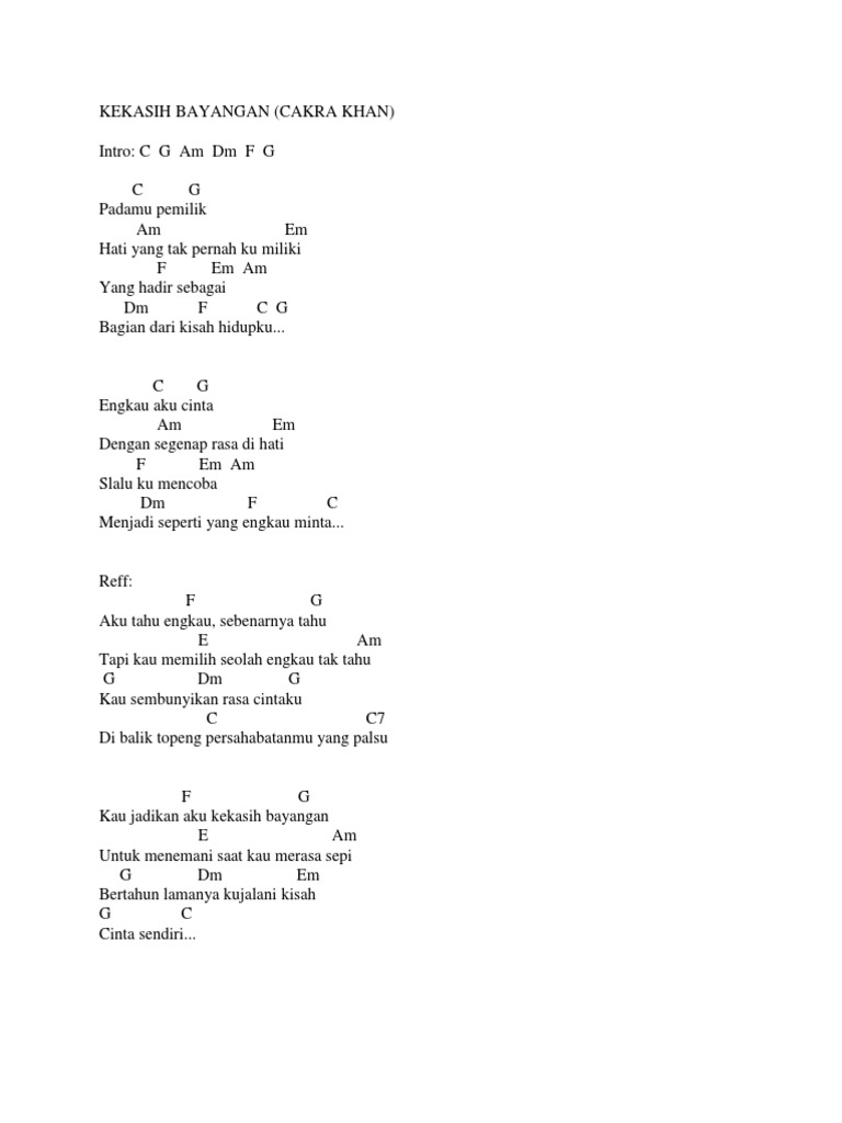 Chord Gitar Lirik Lagu Kekasih Bayangan Cakra Khan Abadikini Com