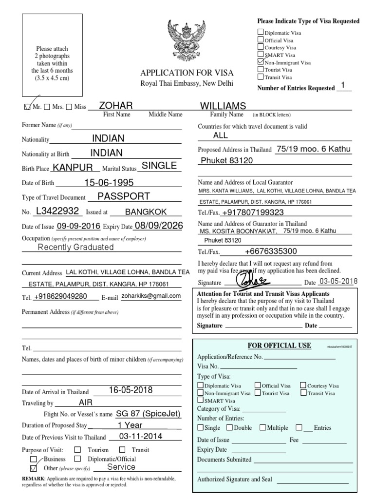 Visa Application Form New Travel Visa Thailand