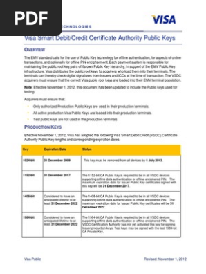 Visa Public Key Tables 2012 11 Emv Online Safety Privacy