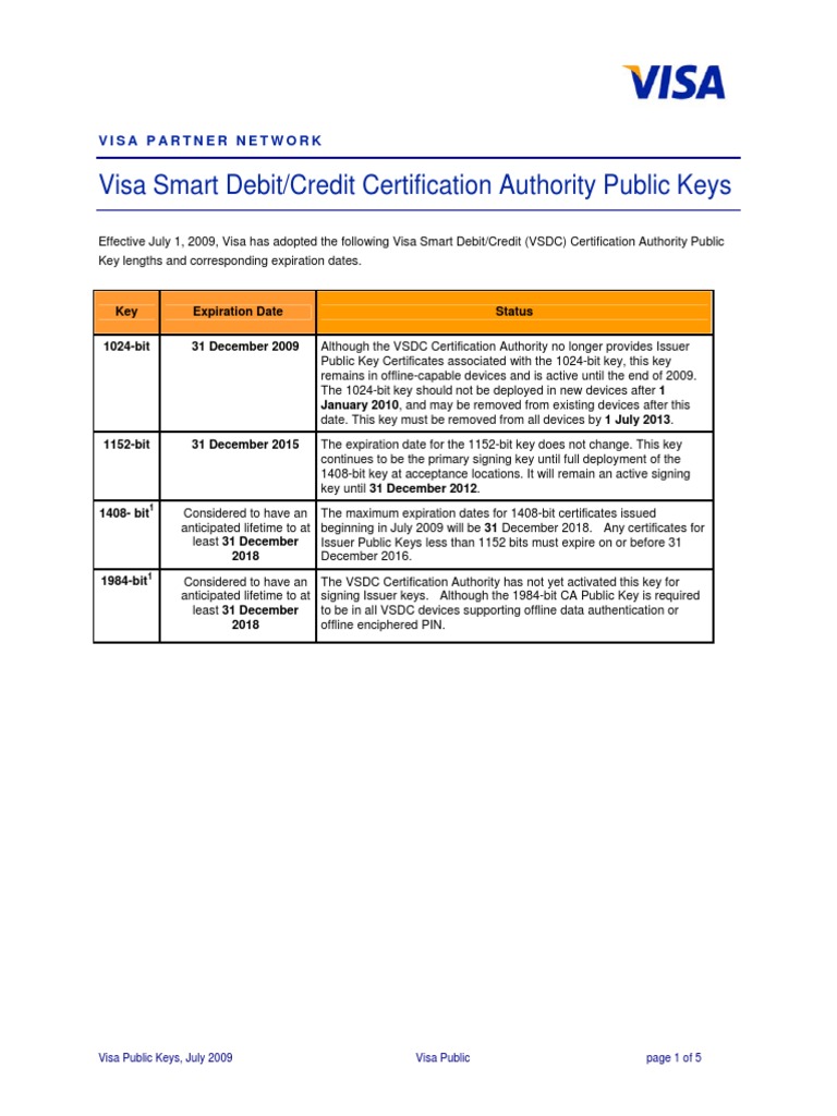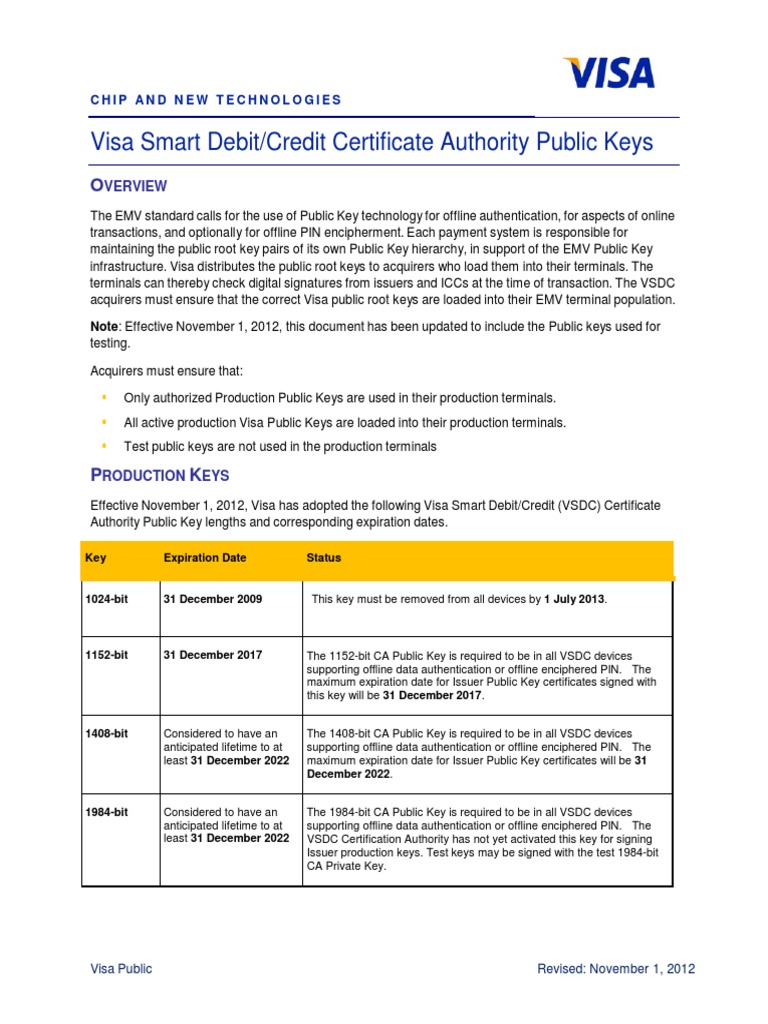 Visa Smart Debit Credit Certificate Authority Public Keys Pdf