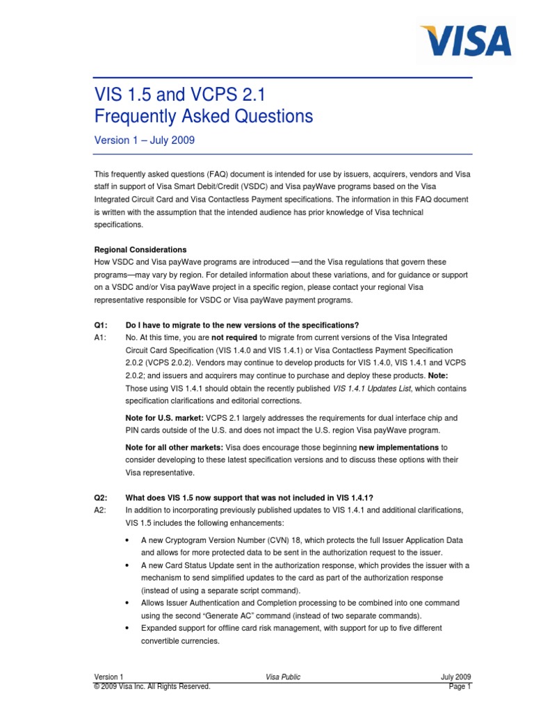 Vis 15 Vcps 21 Faq July 2009 Visa Inc Financial Technology